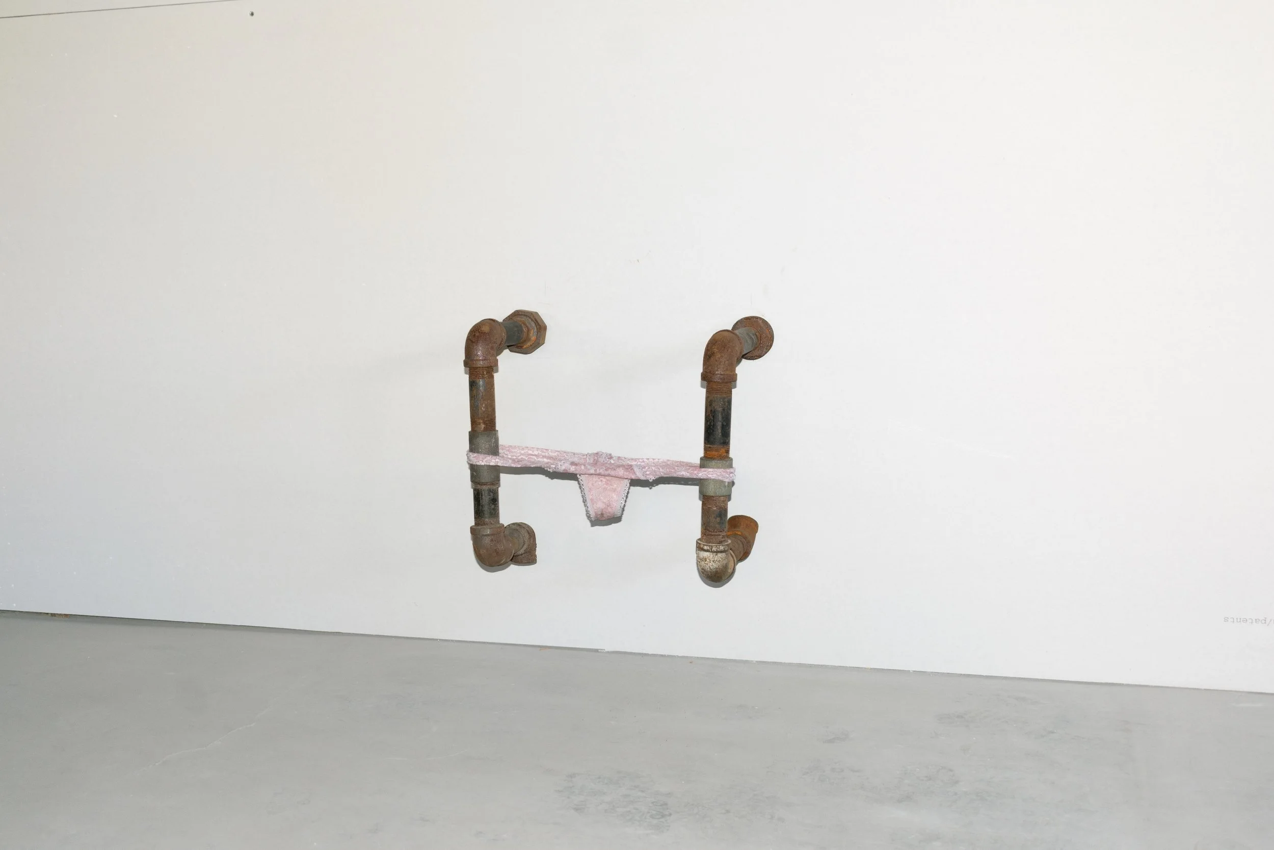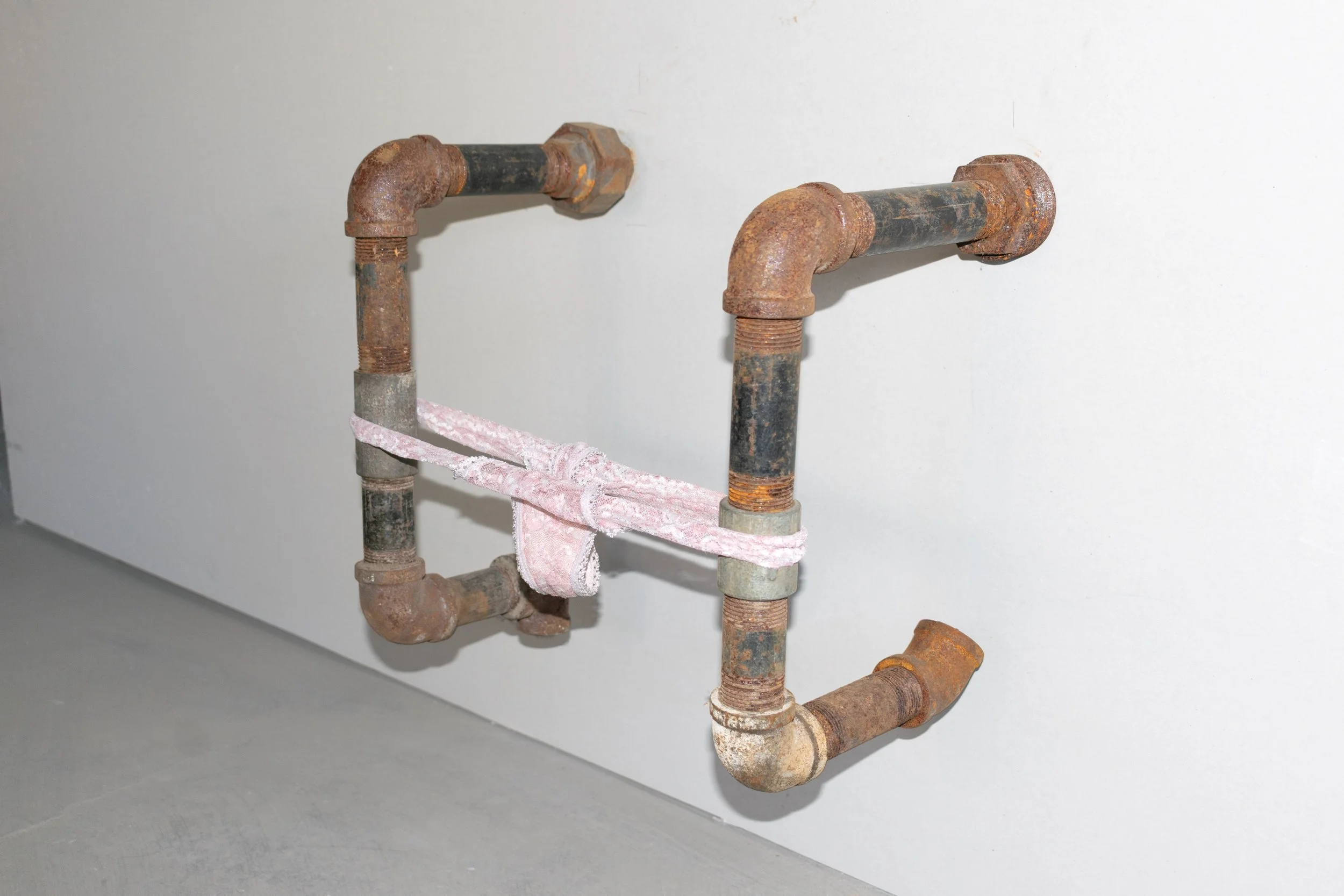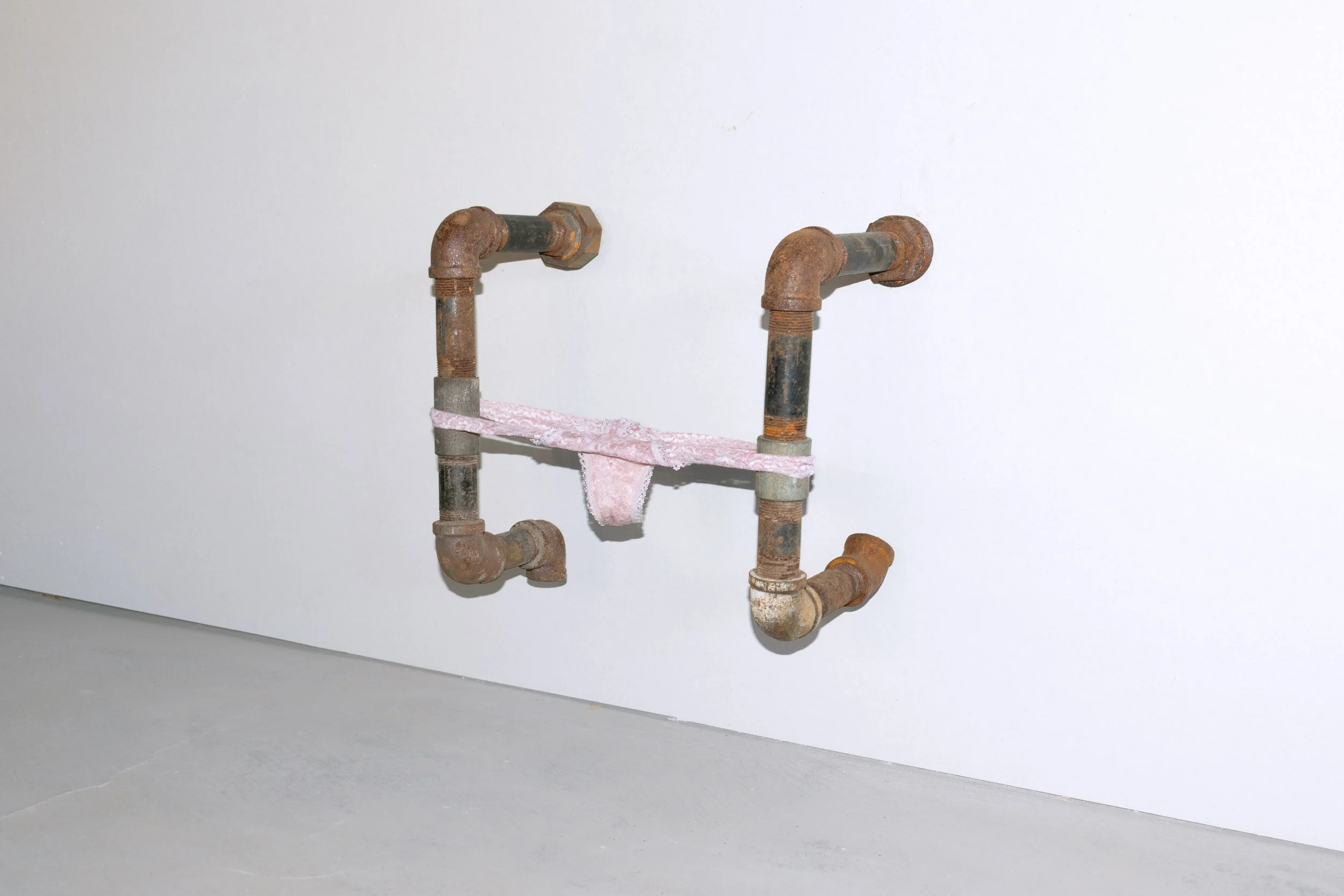 untitled, plumbing pipes, pink panties