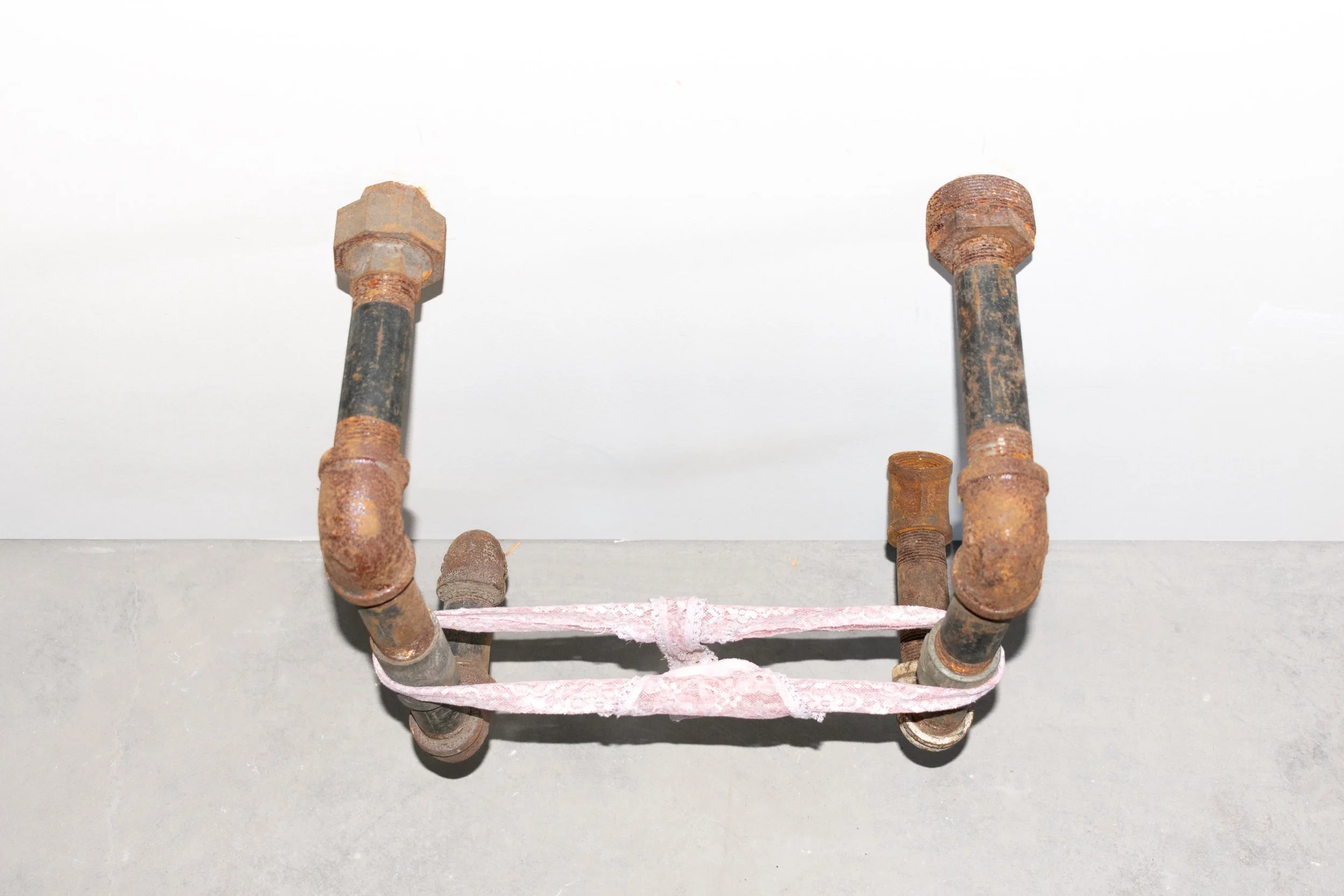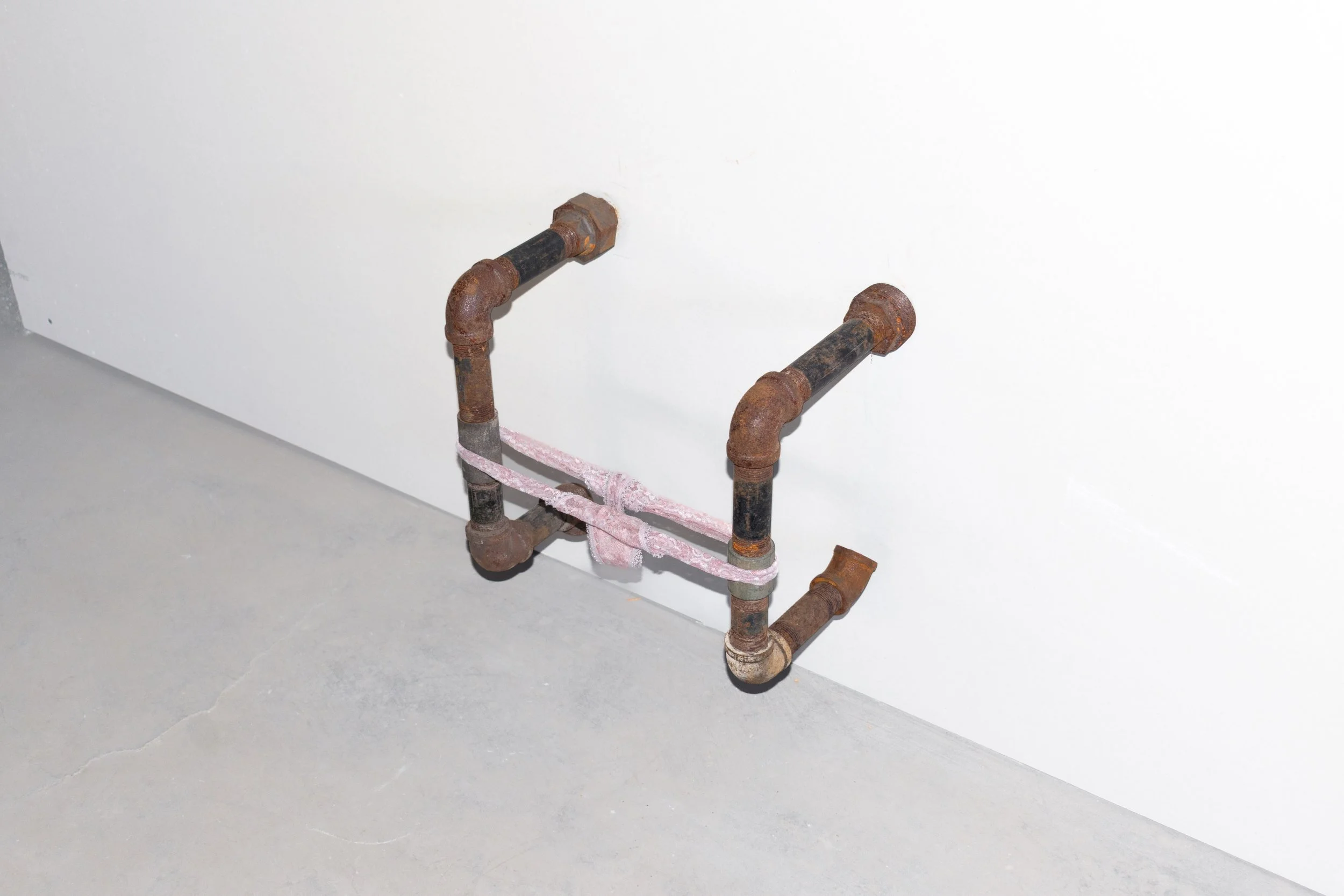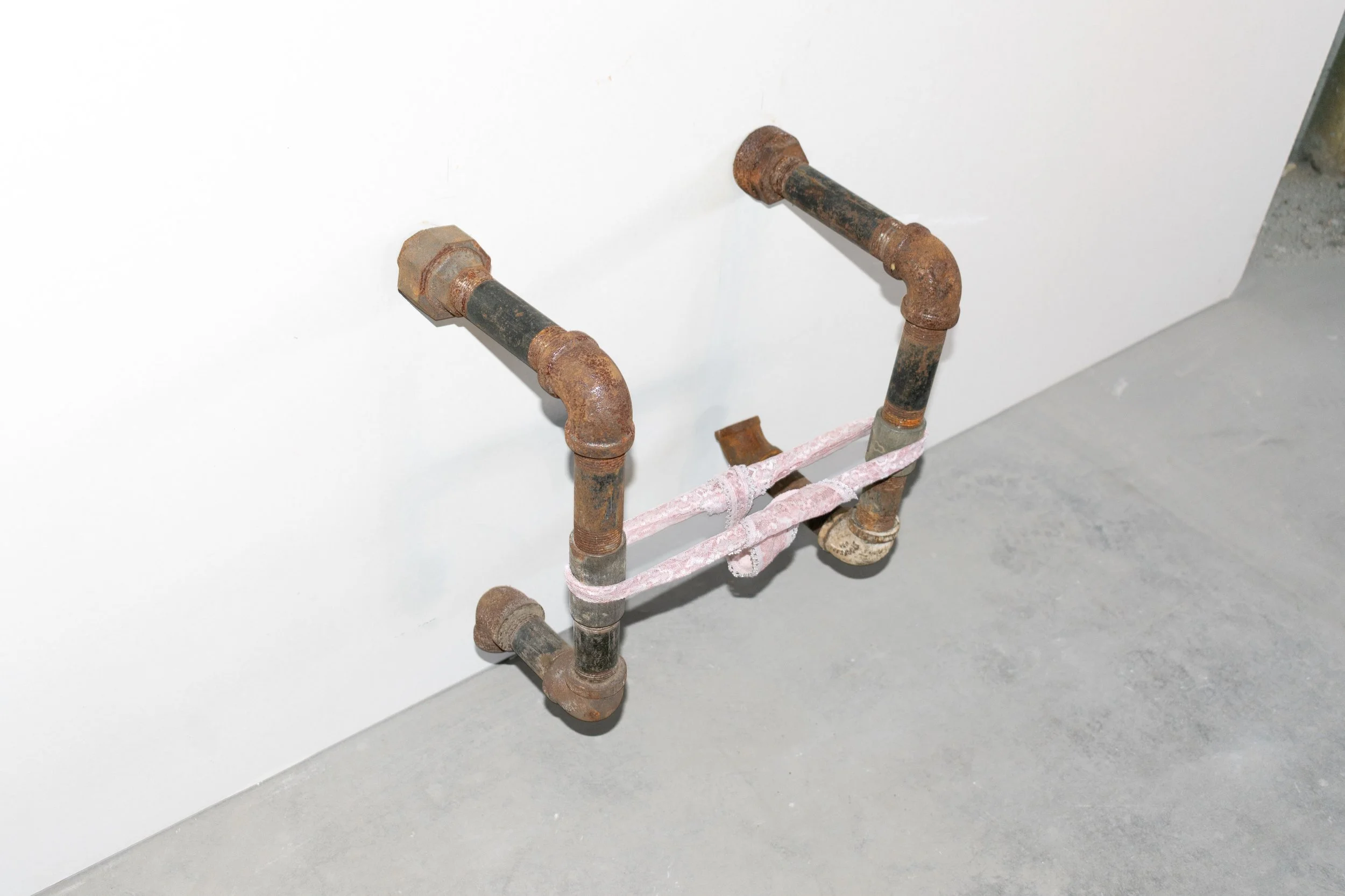 untitled, plumbing pipes, pink panties